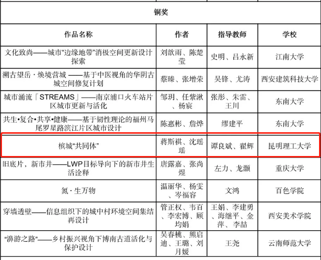 参赛学生蒋斯琪、沈瑶瑶作品—“槟城“共同体””获得“城市设计组”铜奖,指导教师谭良斌、翟辉;