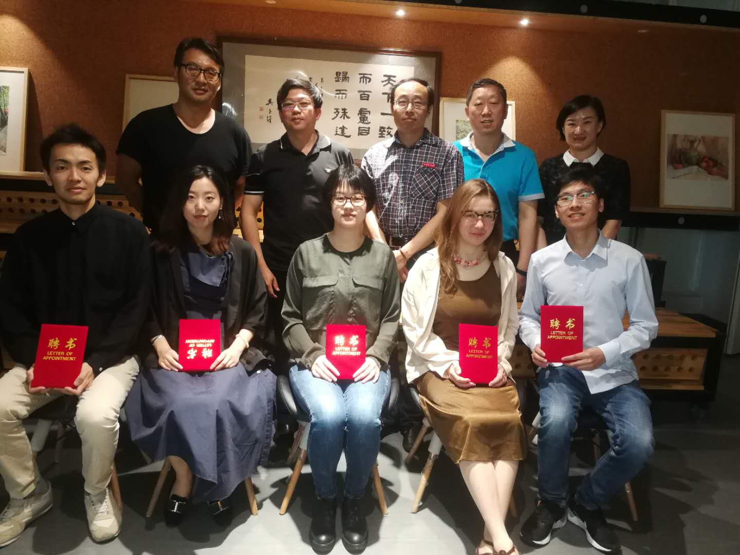 党政领导为来自莫斯科“DA !”建筑事务所的Anna Andronova(俄籍)、孙立东,陌至建筑事务所的keigo mori(日籍)、张婕和上海EID建筑事务所的王文佳五位青年建筑师颁发了“课程设计实验教学外聘导师”聘书。