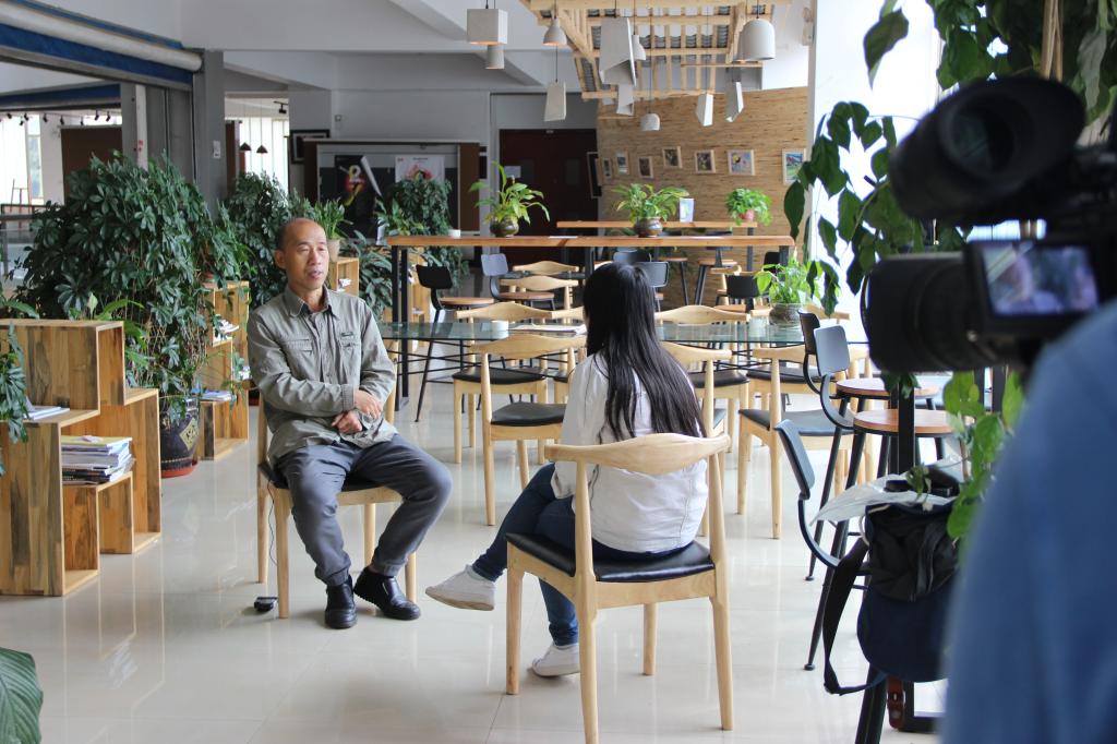 9月22日上午,云南电视台记者在建筑楼中庭“建筑客厅”对足球投注柏文峰教授进行了专访。