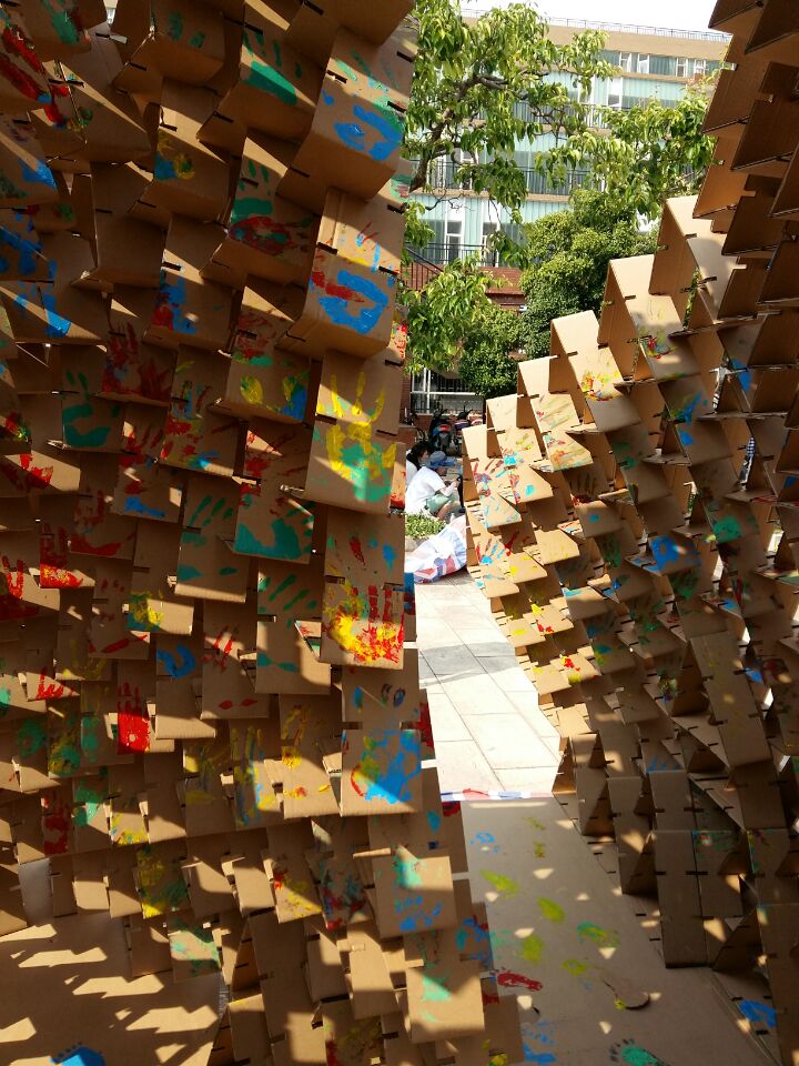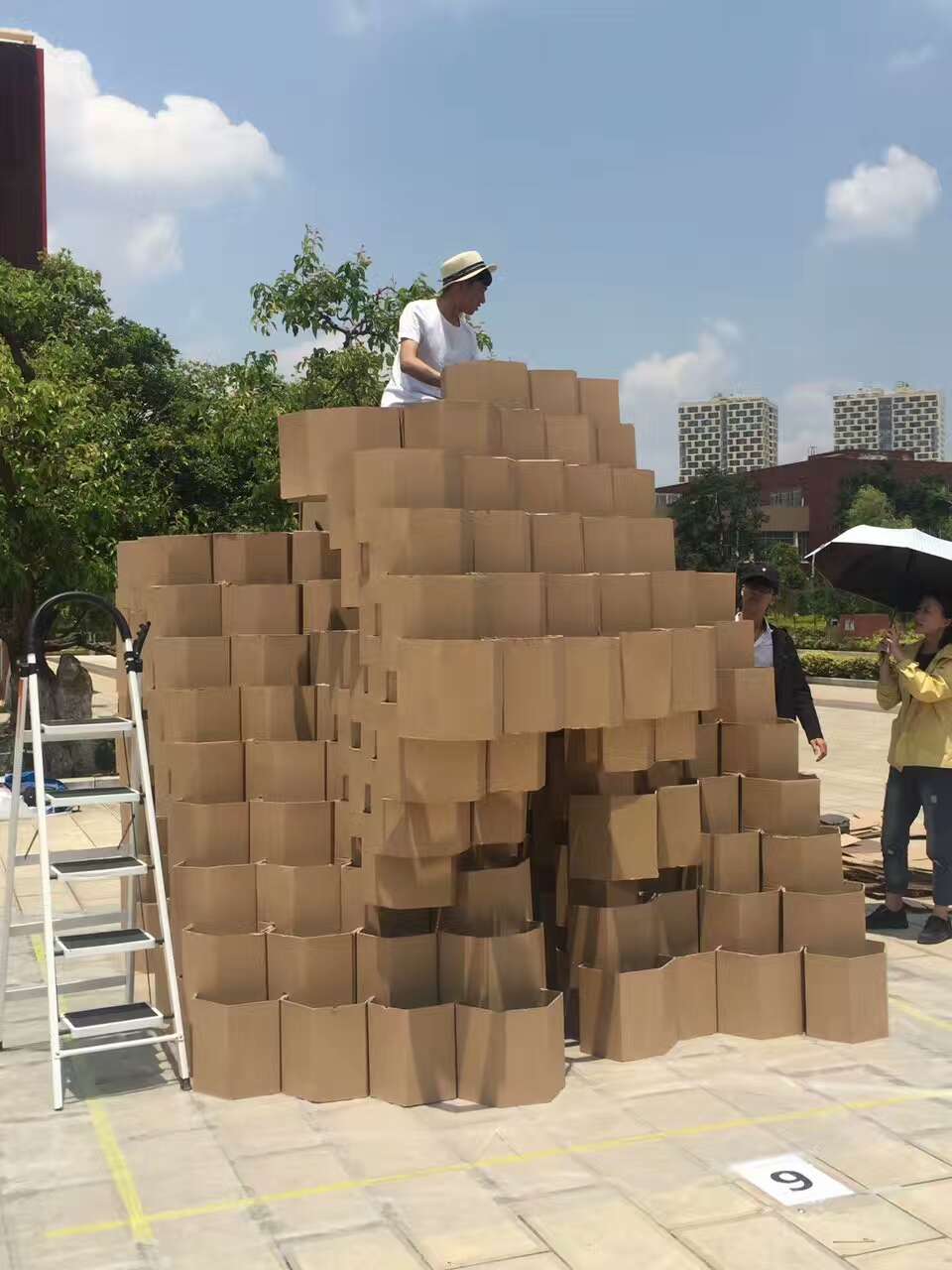 13日下午各队的参赛方案陆续出炉,也吸引了很多前来玩耍的孩子。下午4点经评委团对各纸板建筑在结构、空间和形态等方面的综合考量,评出了本届建造节的各个奖项。获得一等奖的是昆明理工大学津桥足球投注