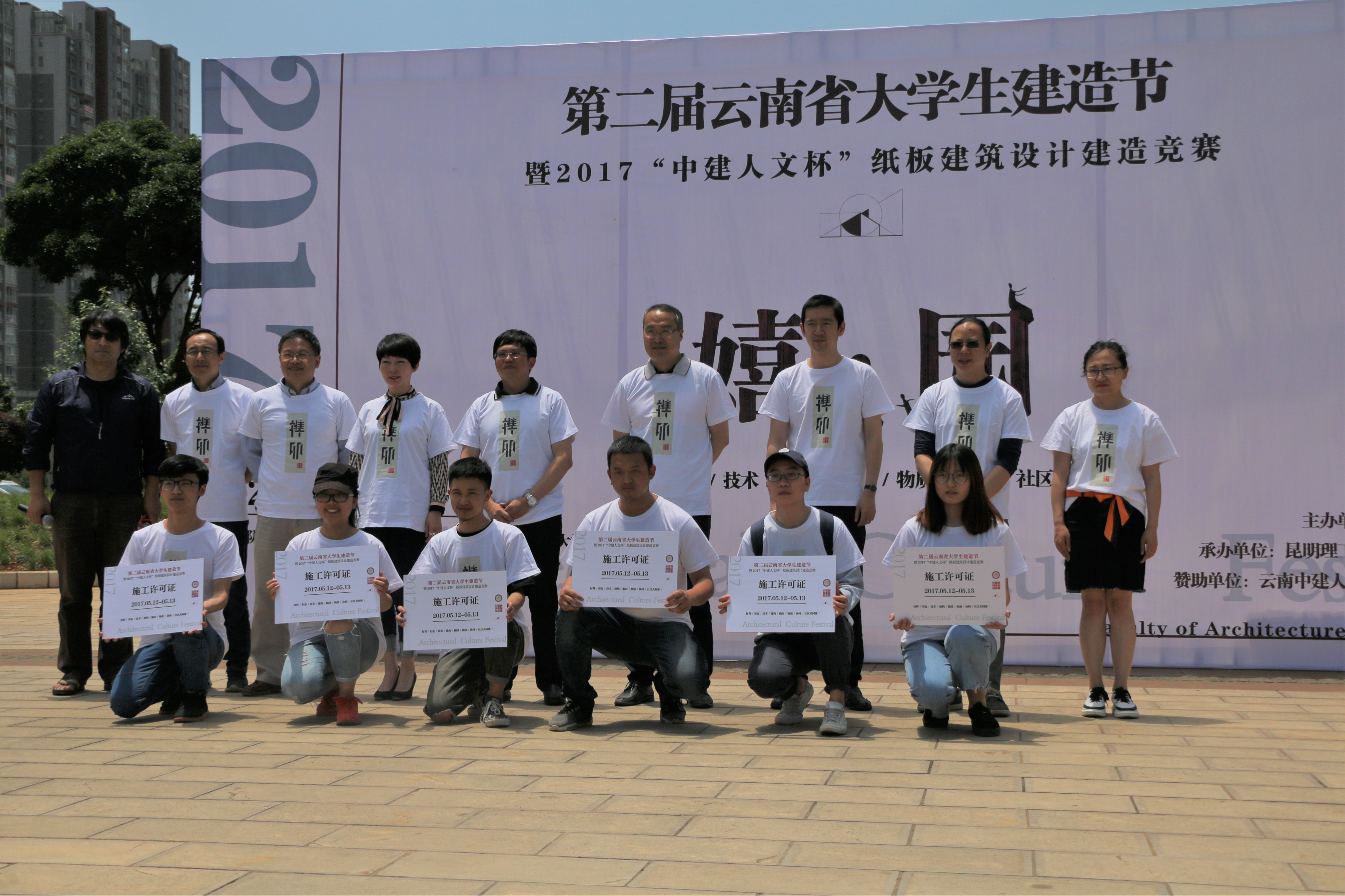 与云南中建人文建筑设计研究院有限公司的领导分别致辞,并预祝各校学子取得优异的成绩,赛出风格,赛出水平。之后给各参赛代表队颁发了施工许可证,比赛正式开始,各高校参赛小组进入了紧张的建造环节。