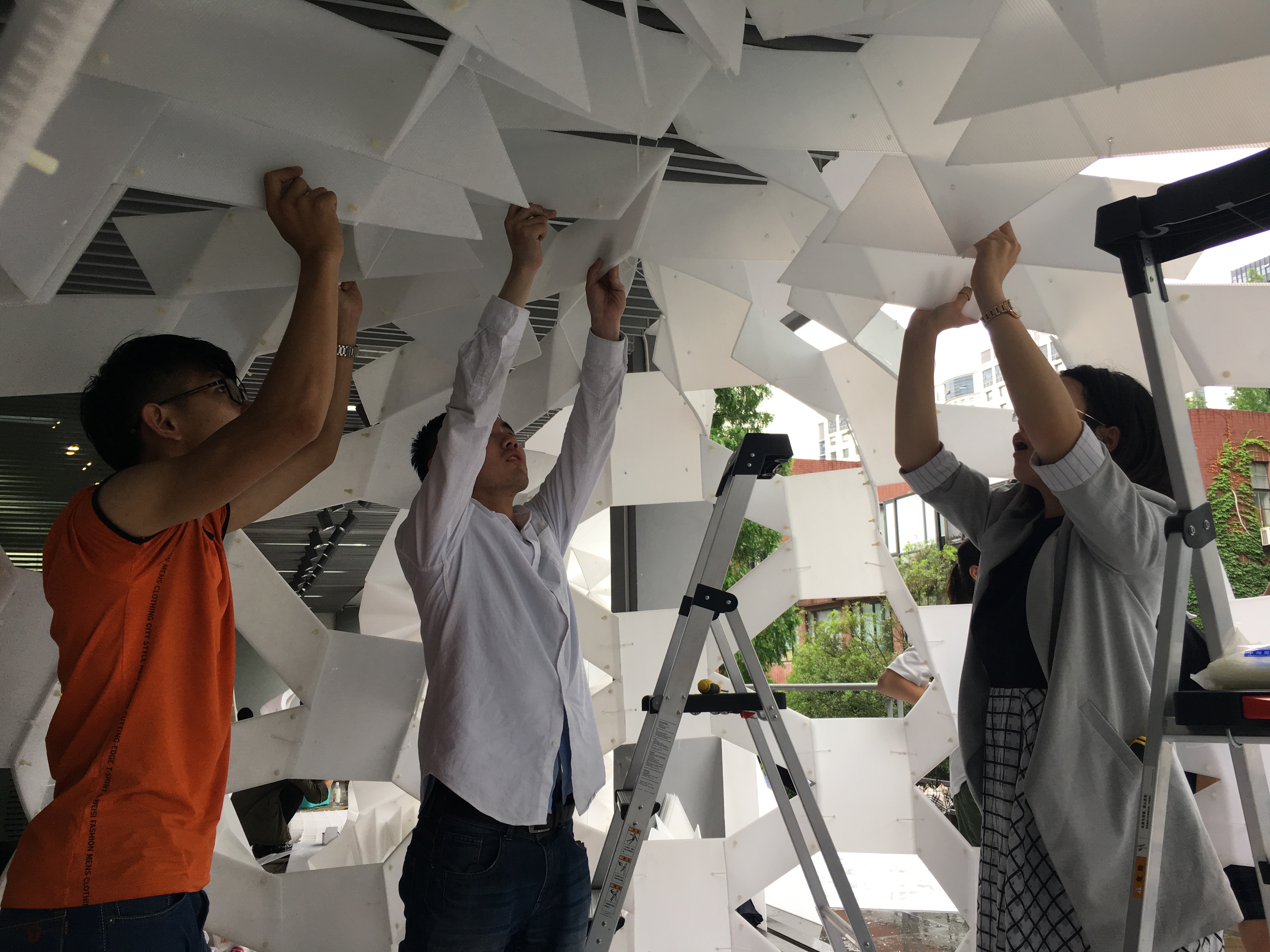 这是一个充满挑战而又激发热情的建筑设计竞赛。每组队员需要在规定的时间里,利用30张中空PP板,辅以螺栓,通过对基地特征和材料性能的认识和挖掘,充分发挥想象力,建造出具有可使用内部空间的中空板建筑。在本届建造节中,友好的邻里关系、现实的功能空间、适宜的建造方式和新颖的结构形态是必须面对的课题。因此,创意、建造和团队精神是三大关键要素。