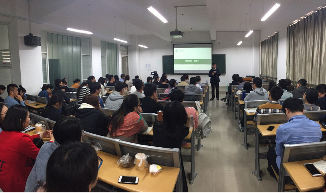 石铁矛校长,讲座主题:“气候变化背景下低碳城市响应——城市碳汇的布局优化与功能提升”。石老师从微观建筑到宏观城市环境,展示了一系列关于低碳的研究成果,其中提出“碳汇”的全新概念引发了大家热烈的讨论。