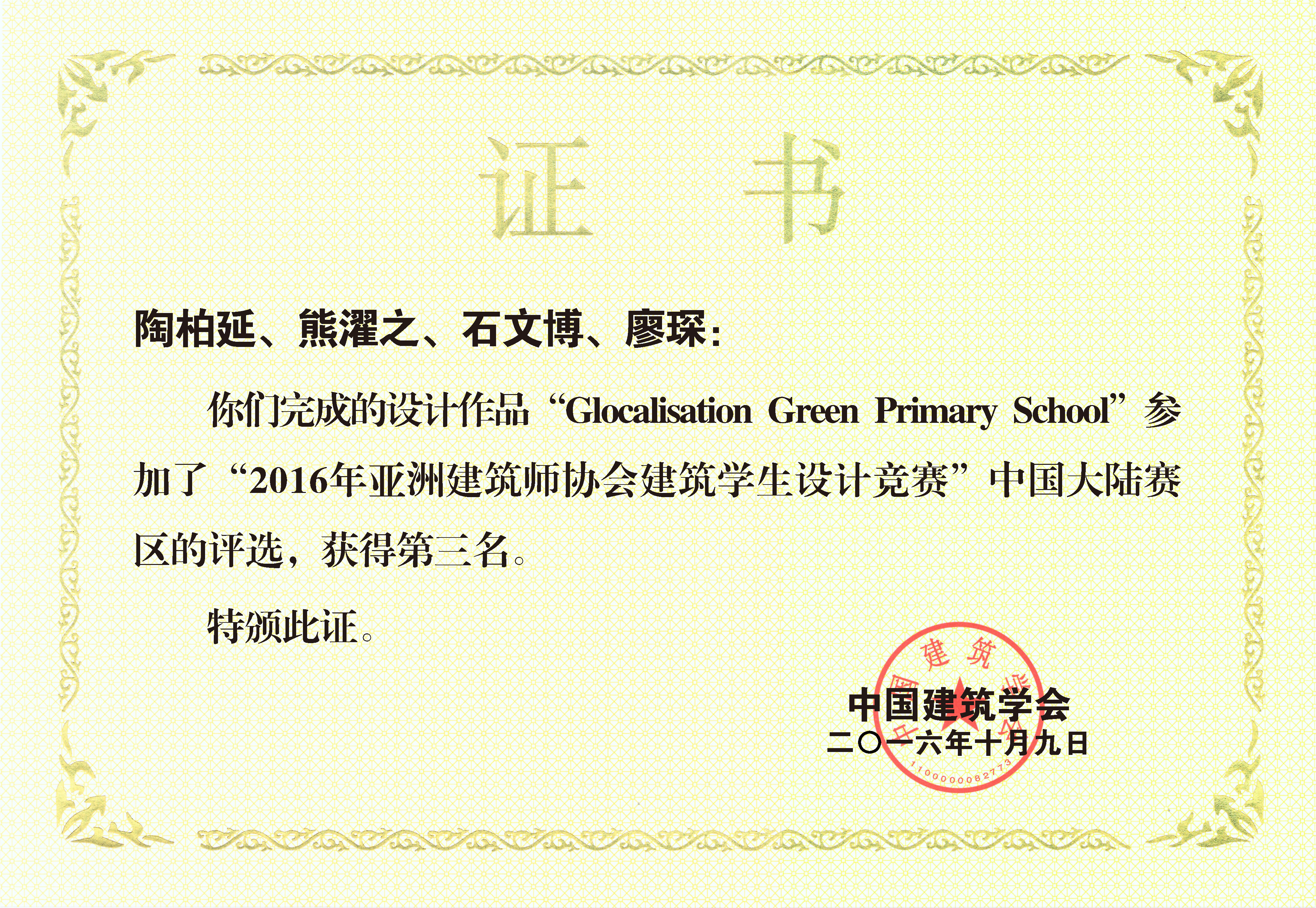 近日,亚洲建协第37届理事会暨第17届亚洲建筑师大会在香港召开,会上颁发了“亚建协”学生竞赛奖。