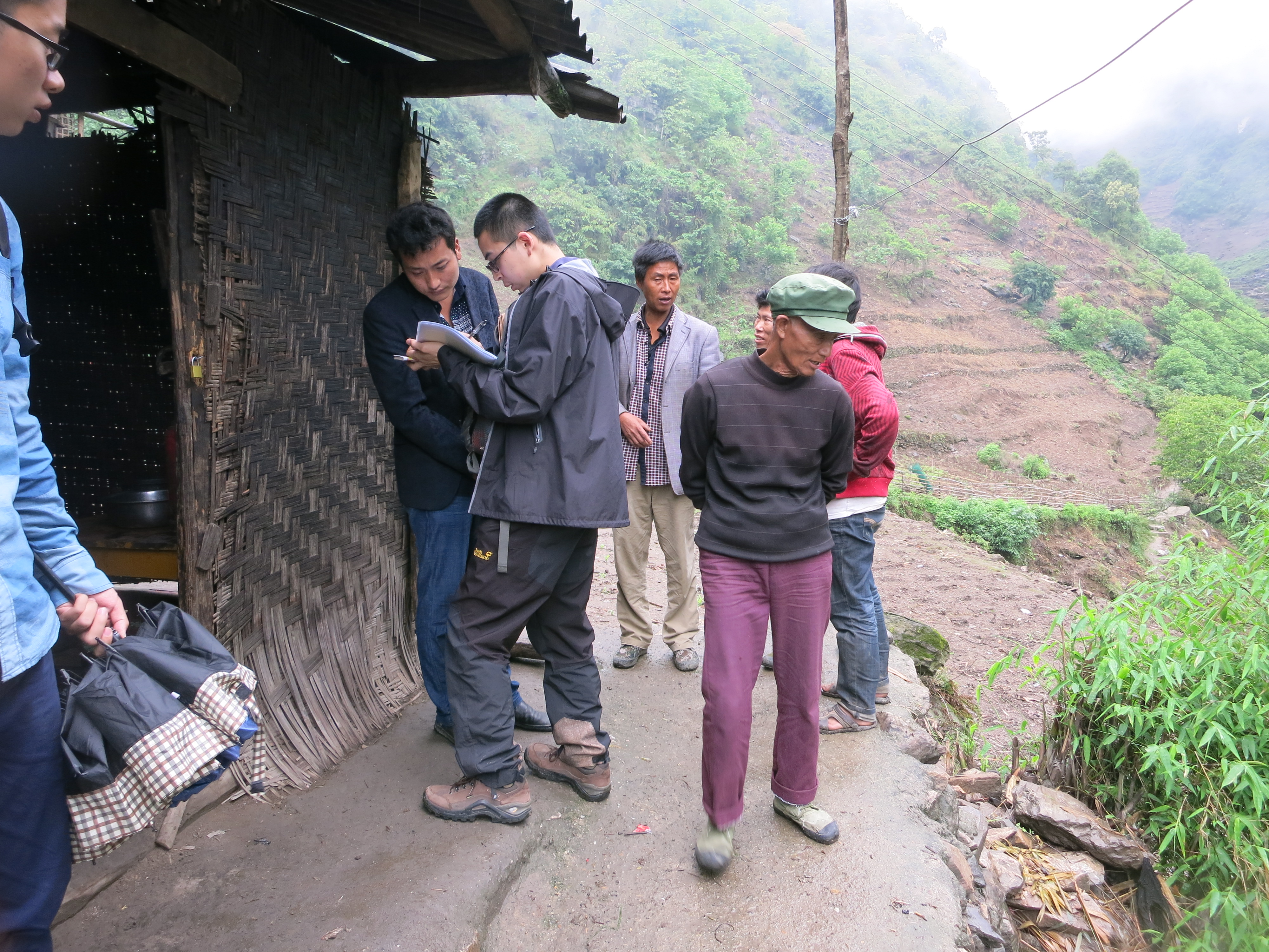 在4月24日—27日的前期调研工作中,由于4月26日泸水县遭遇特大暴雨的自然灾害,从六库镇到我校负责规划设计的相关乡镇发生山体滑坡、泥石流等自然灾害,道路中断,无法到达现场进行调研,足球投注师生5月15日上午9:30,在天气交通和确保安全的条件下,4位在校研究生、6位本科生一行10人再次从昆明西部客运站坐车前往怒江傈僳族自治州泸水县,于当日晚7点左右到达目的地六库镇开展二次现场调研工作。