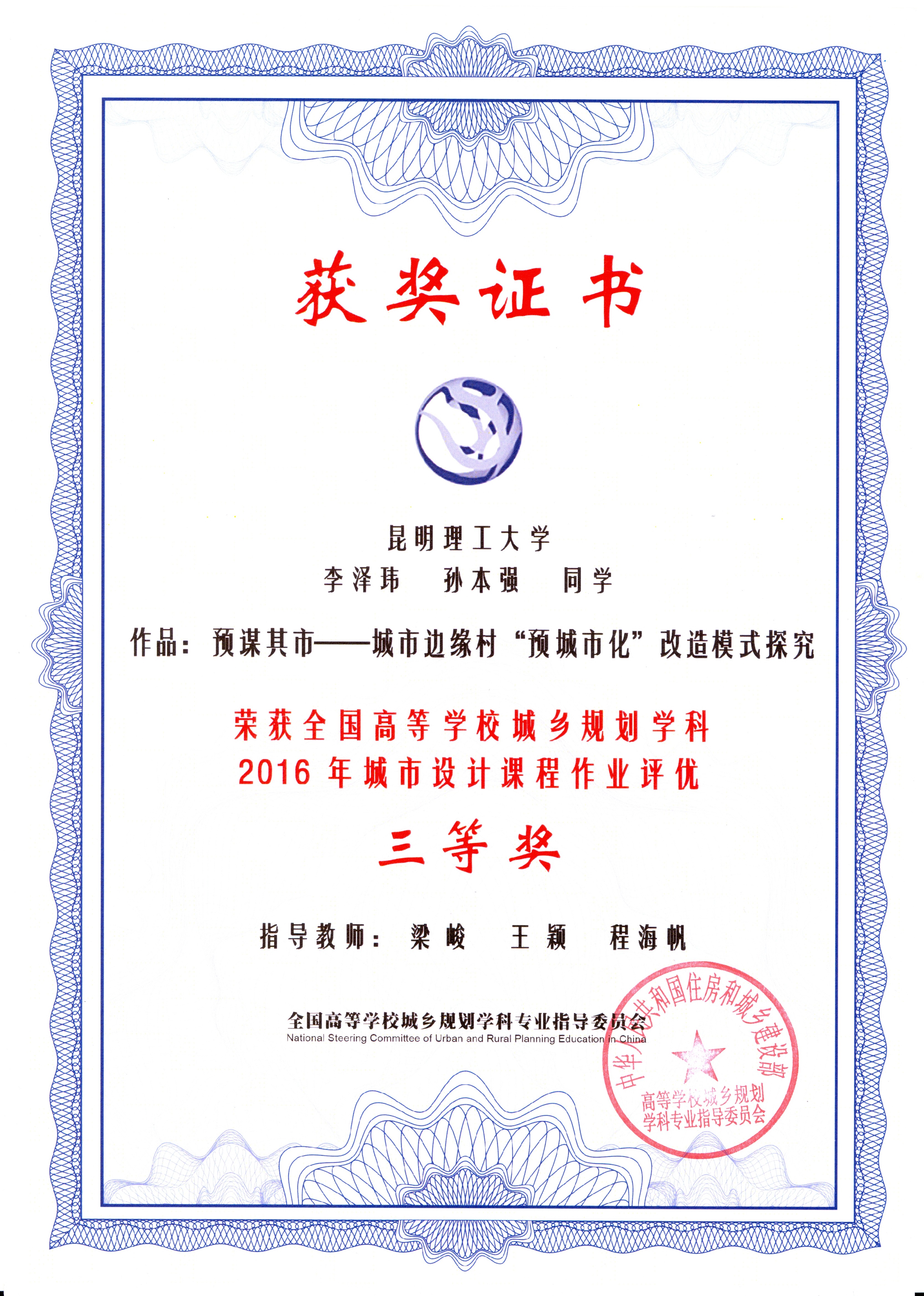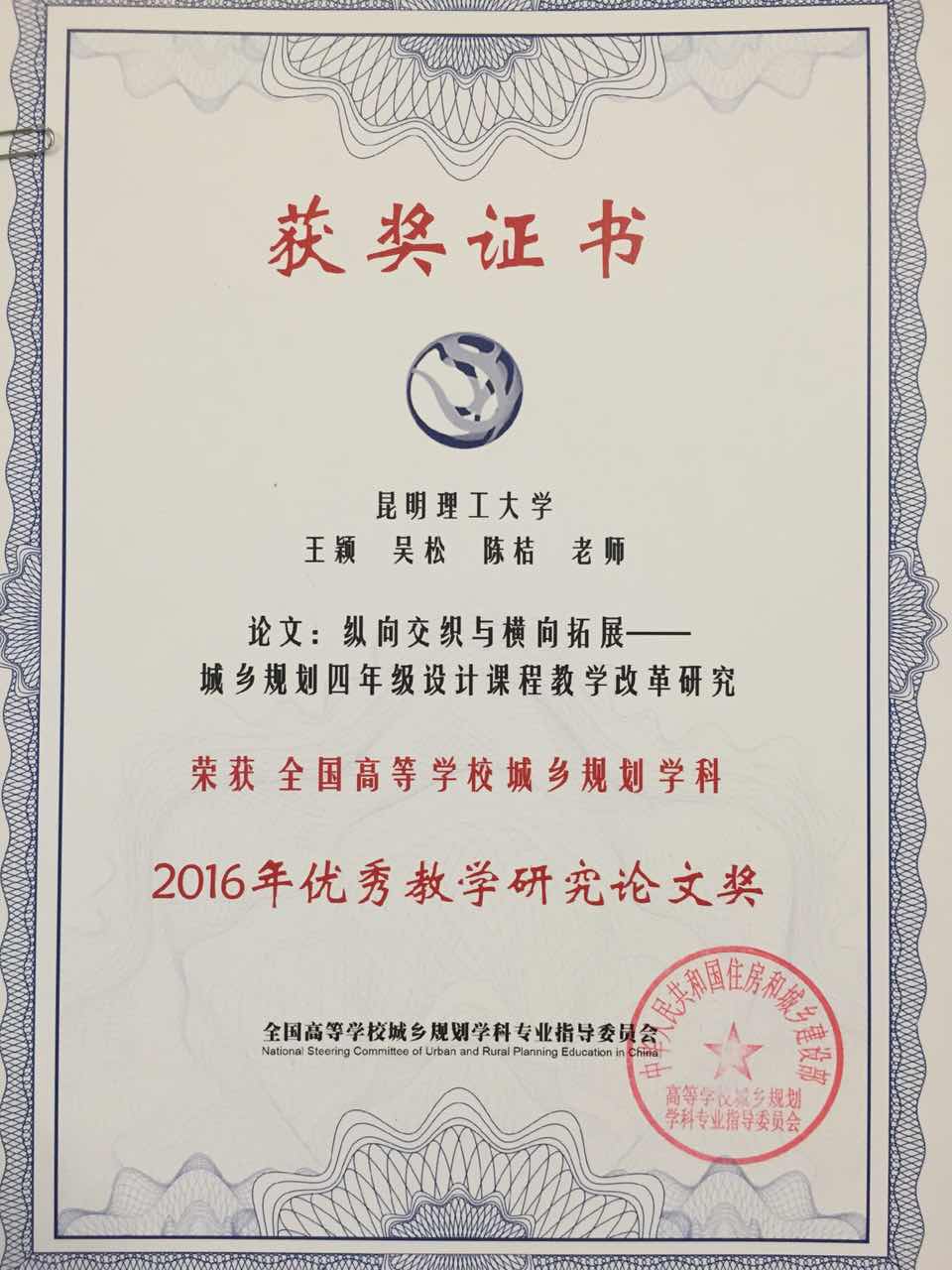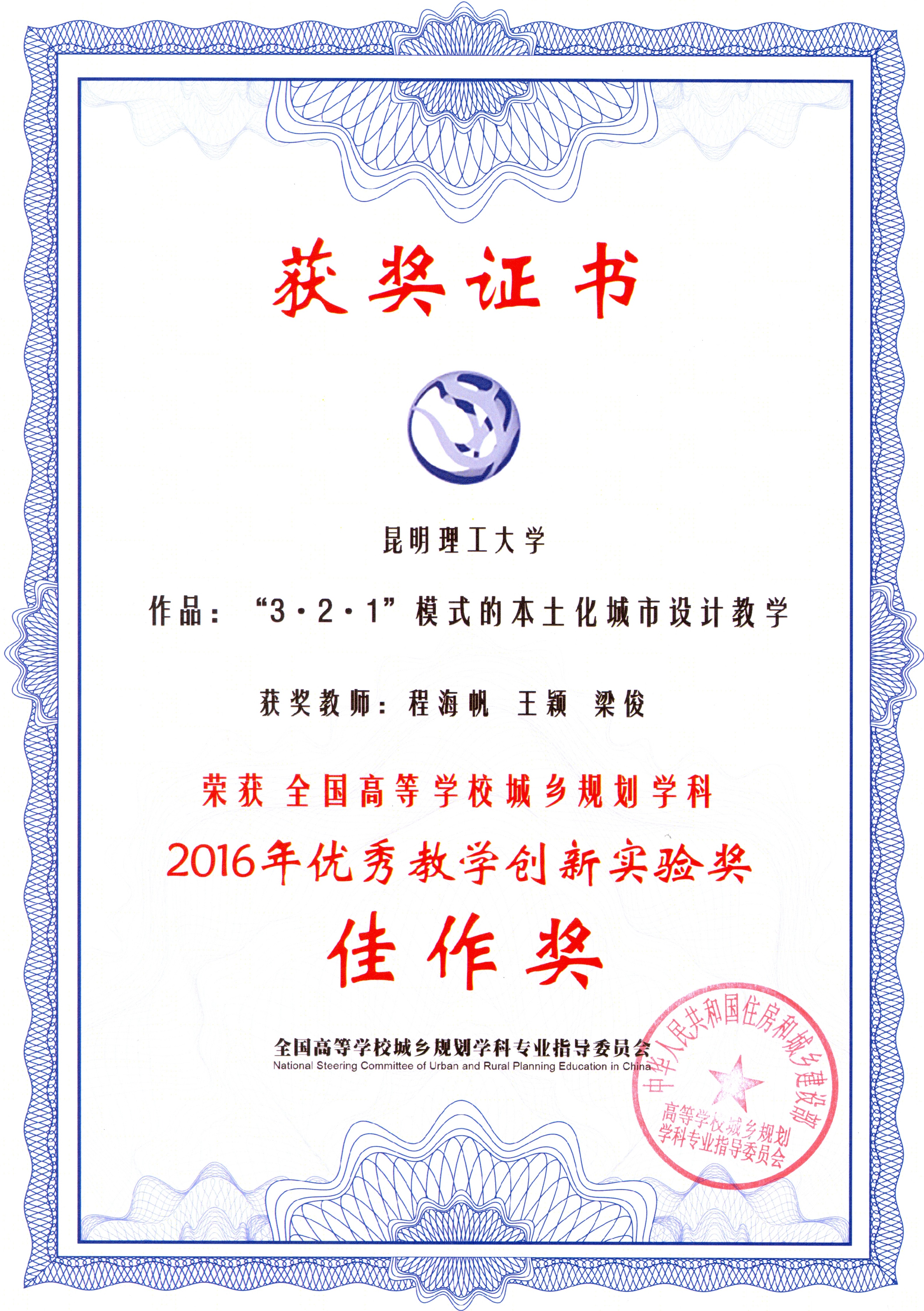 在本次年会相关竞赛中分别获得了全国高等学校城乡规划学科“2016年城市设计课程作业评优” 三等奖一项、“2016年优秀教学创新实验奖” 佳作奖一项、“2016年优秀教学论文奖”一项并参加了分论坛报告会交流发言。