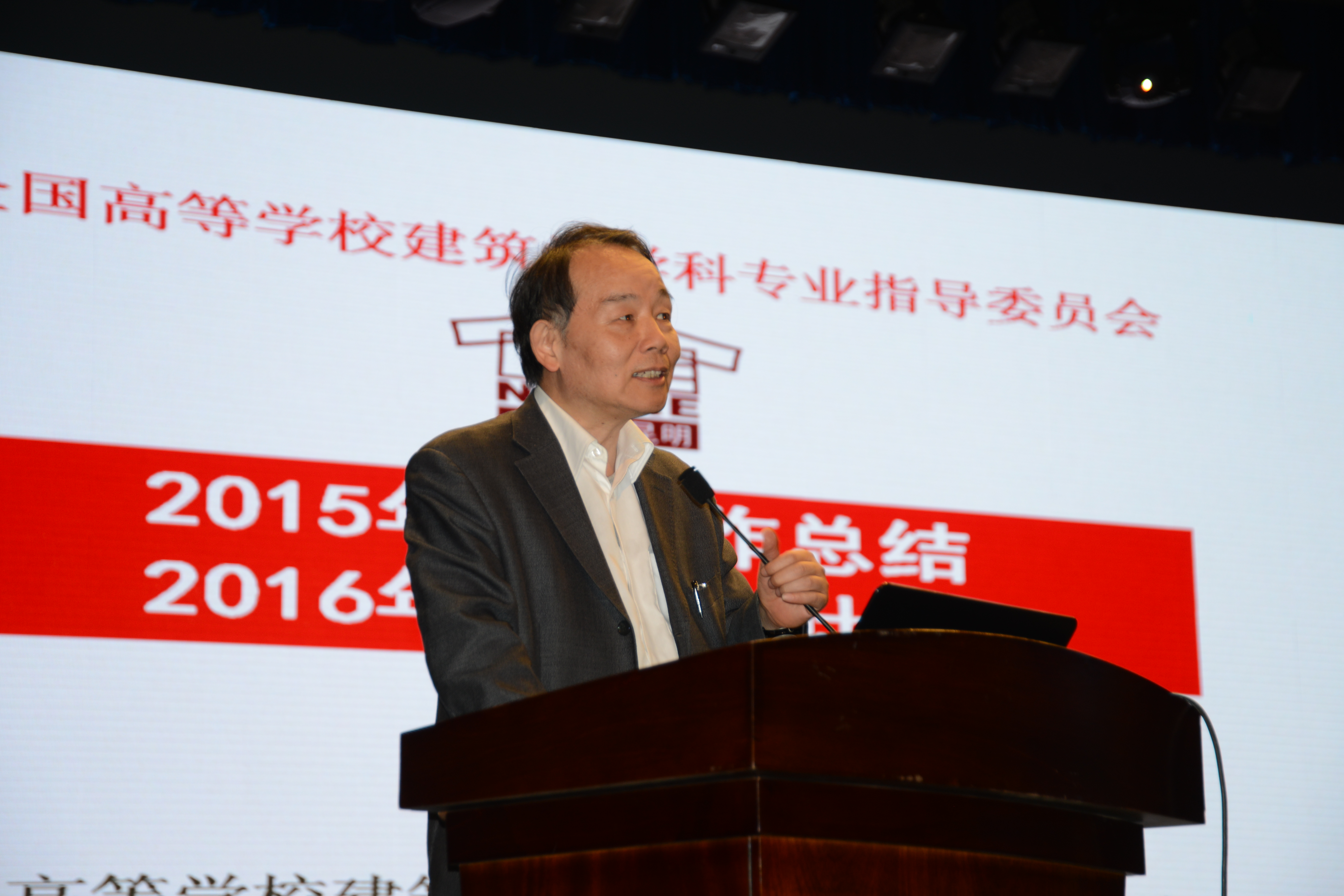 全国高等学校建筑学专业指导委员会第六届主任王建国教授在大会上向各位参会高校代表汇报了2015年专指委年度总结报告以及新年度的工作计划。