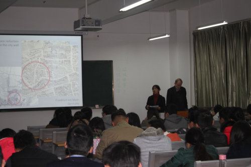教授、德国汉诺威大学五大官方研究中心之一的园林艺术和风景园林中心董事会成员、国际景观与都市园艺委员会主席格尔特·格鲁宁(Gert Groening)教授主讲,车震宇老师担任翻译。讲座“以艺术方式展开的创作过程-展望园林与景观设计的前景”和“不同尺度下的城市园林:角色、期待、展望”为主题,全面分析了当下的社会和人文背景下,景观园林设计的前景,分别为到场师生带来了两场精彩的学术报告。