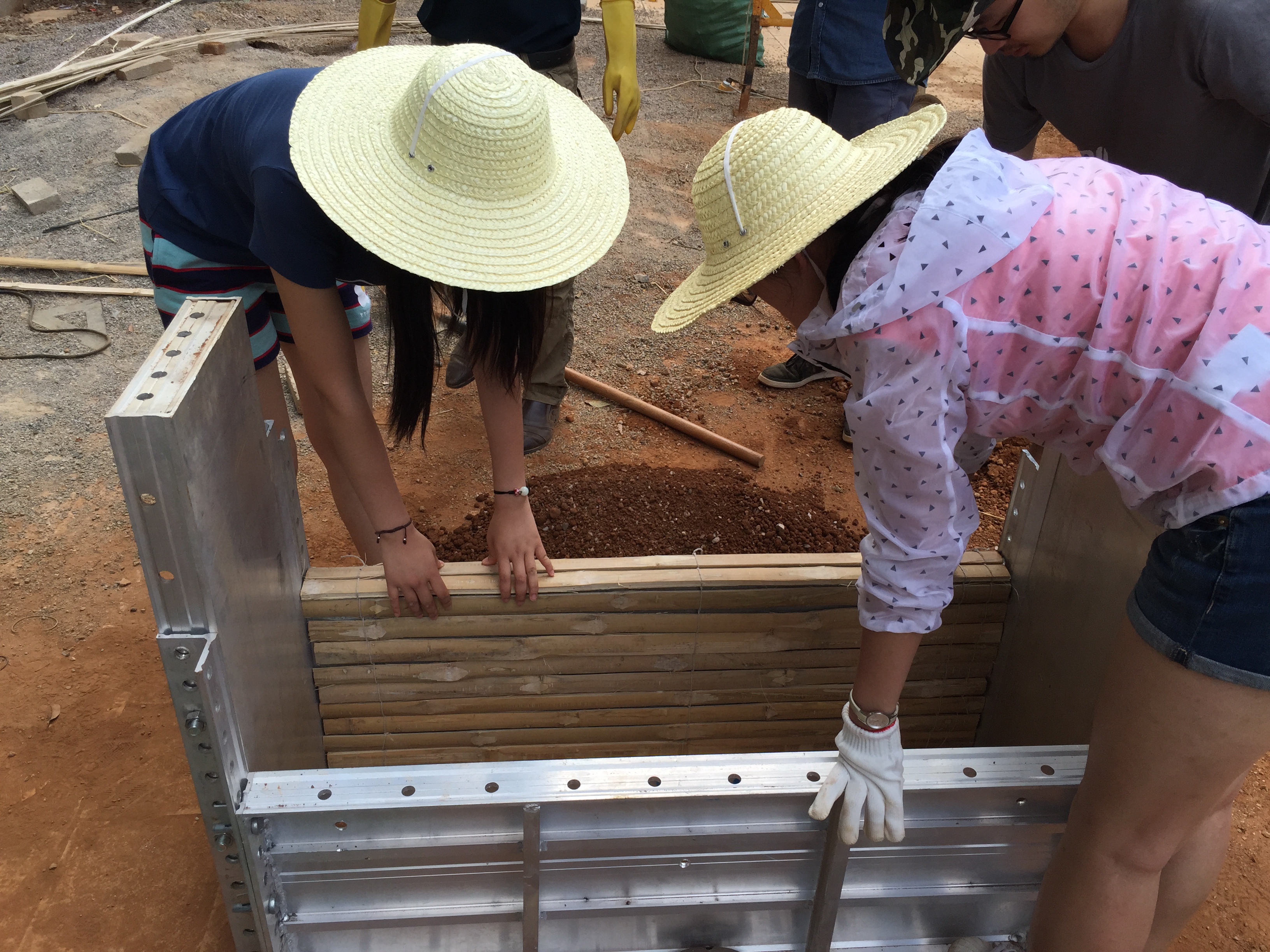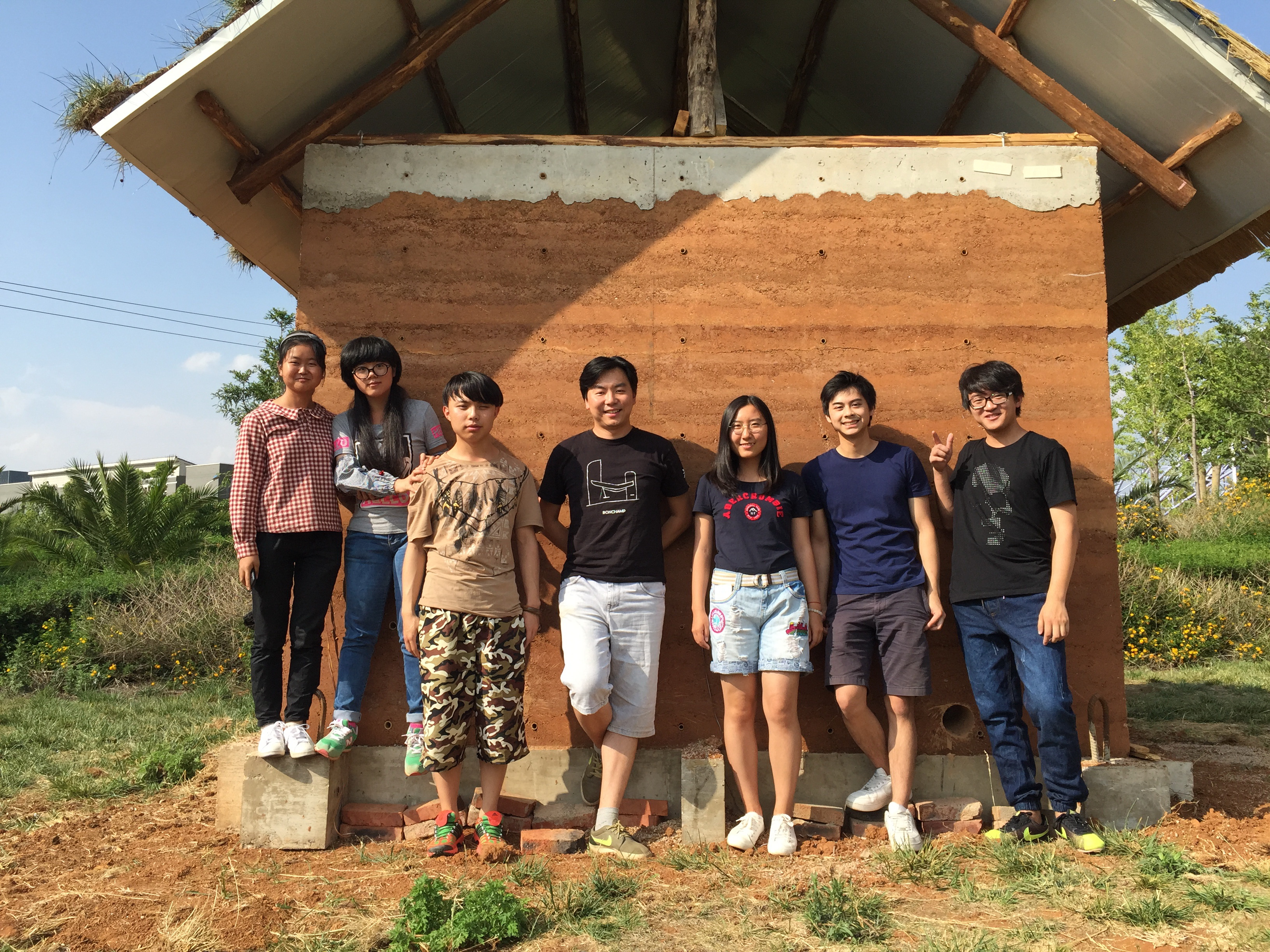2、研讨以夯土建筑为基础的多样性建造,结合节能构造设计并完成对生土节能墙体的建造实践。