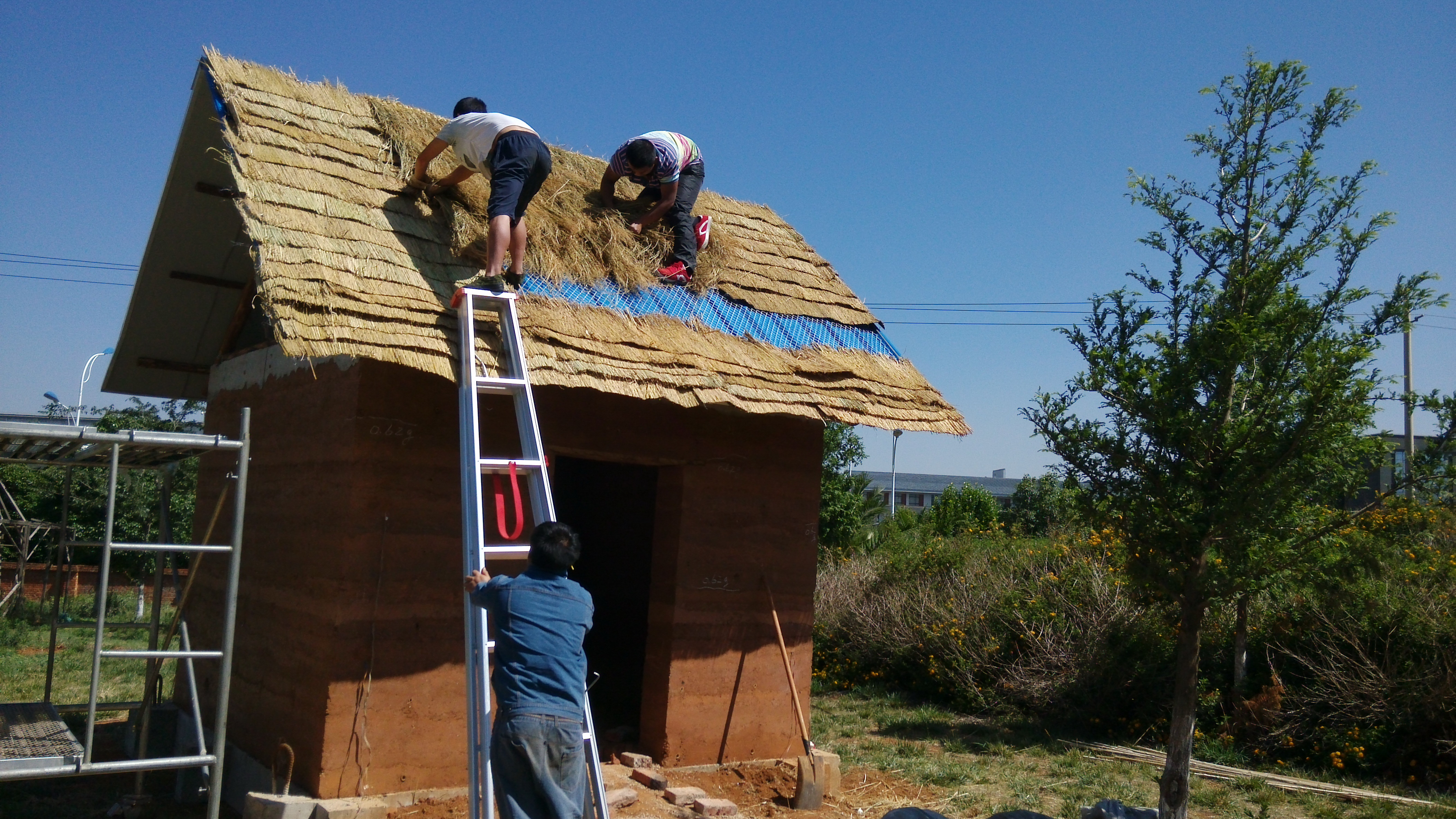 铺设茅草屋顶