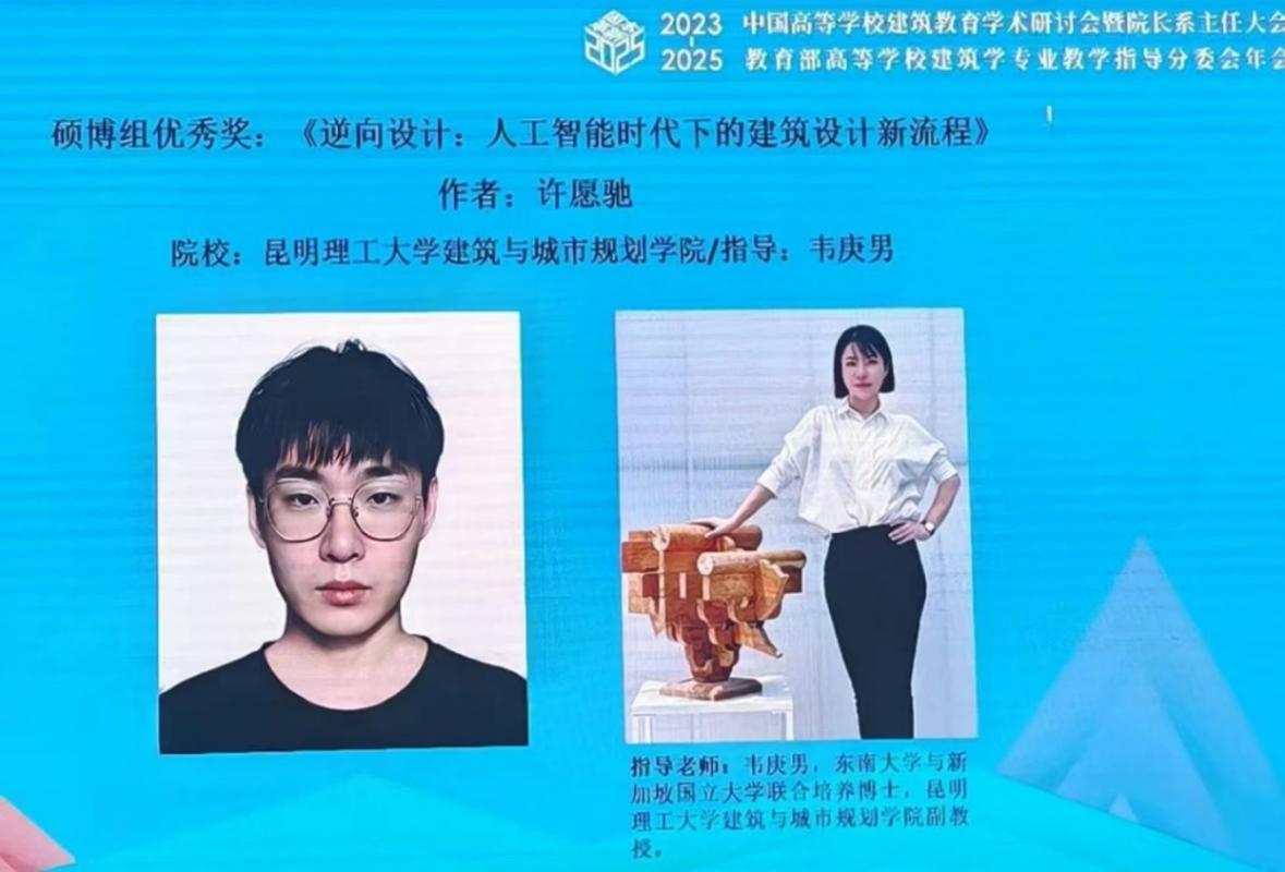 论文《逆向设计:人工智能时代下的建筑设计新流程》,(作者:许愿驰;指导老师:韦庚男副教授),荣获 2024 年“清润杯”论文竞赛优秀奖。