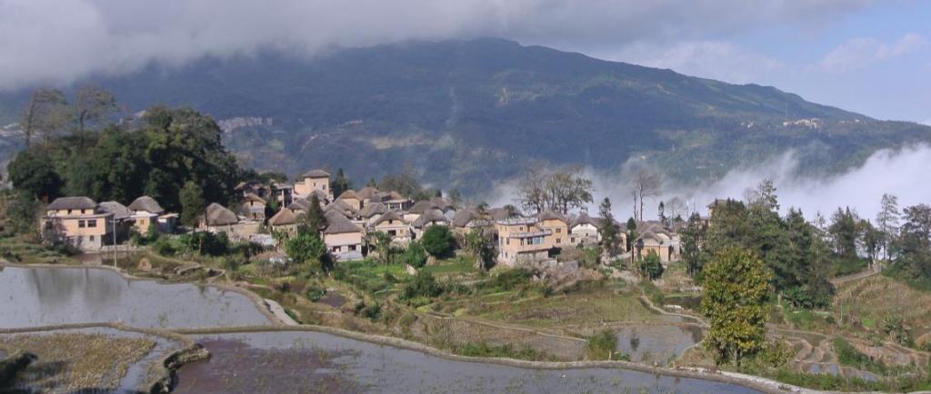 阿者科村全貌。村寨是梯田劳动者的家园,是村民的生活空间与文化空间,也是梯田遗产旅游发展中游客的集散地,因此它也成为活态遗产保护的重点。